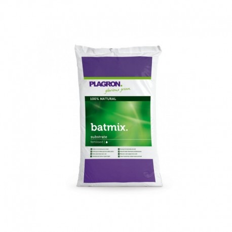 Bat Mix 50L Plagron Le terreau Plagron BAT MIX est un substrat 100% d'origine organique composé à partir des meilleurs qualités de tourbes du marché, d’amendements organiques. La présence de compost de vers et de Perlite permet d'améliorer considérablement la qualité du sol.